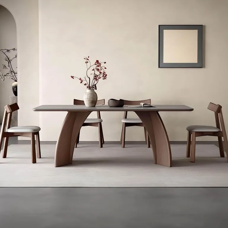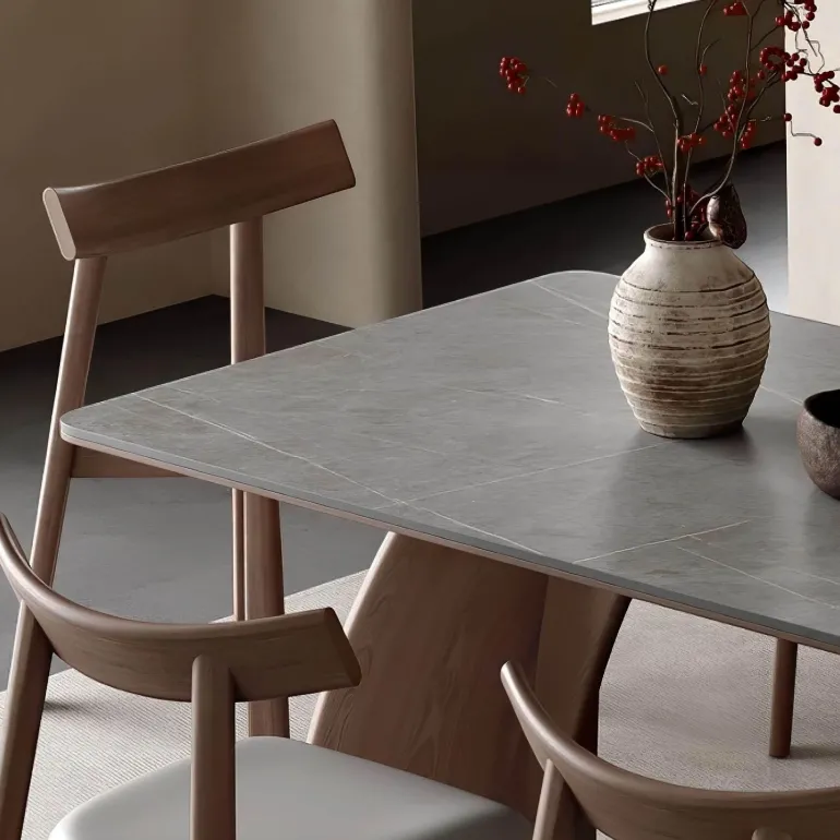 Das markante Zusammenspiel der edlen Holzmaserung und der polierten Steinoberfläche setzt einen edlen Blickfang und unterstreicht die Schönheit jedes Essbereichs. Ob elegante Dinnerpartys oder gemütliche Familienessen – dieser Esstisch steht für Langlebigkeit und zeitloses Design. Er ist die ideale Wahl für alle, die Wert auf edle Handwerkskunst und moderne Ästhetik legen. Er wird Ihr Zuhause über Jahre hinweg bereichern.