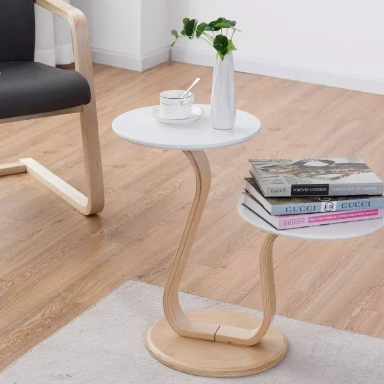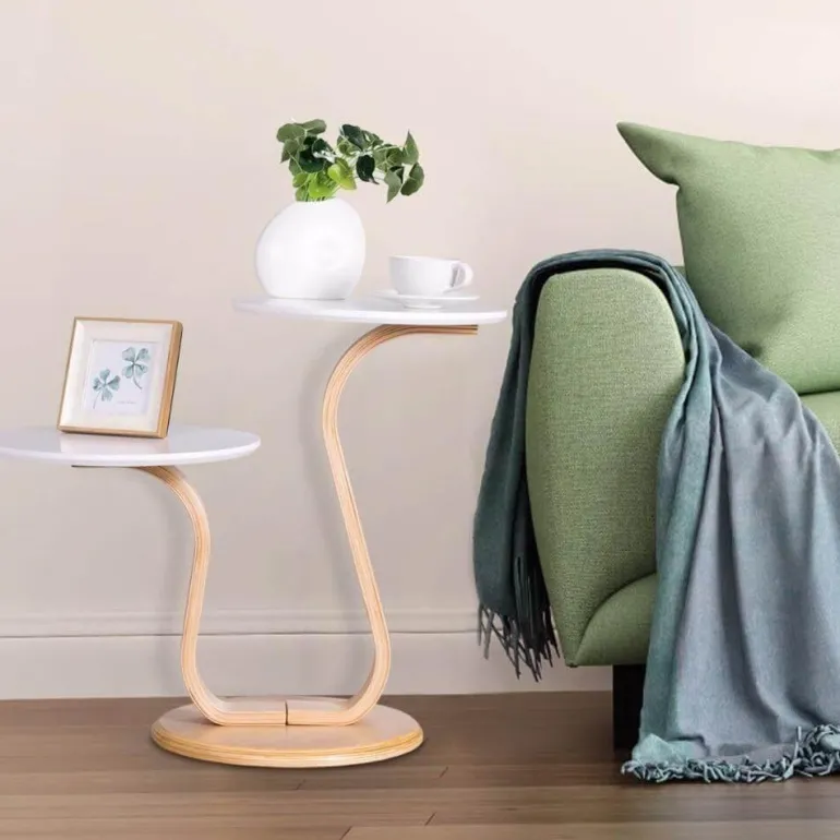 Dieser Beistelltisch wurde mit fortschrittlicher Bugholztechnologie gefertigt und mit einem ungiftigen Nitrozelluloselack veredelt. Er bewahrt die natürliche Schönheit des Birkenholzes und ist gleichzeitig langlebig. Die robuste Tischplatte aus dichter Platte vereint Funktionalität und Eleganz und ist bis zu 10 kg belastbar. Dank seines geringen Gewichts lässt er sich leicht bewegen und im ganzen Haus umstellen.