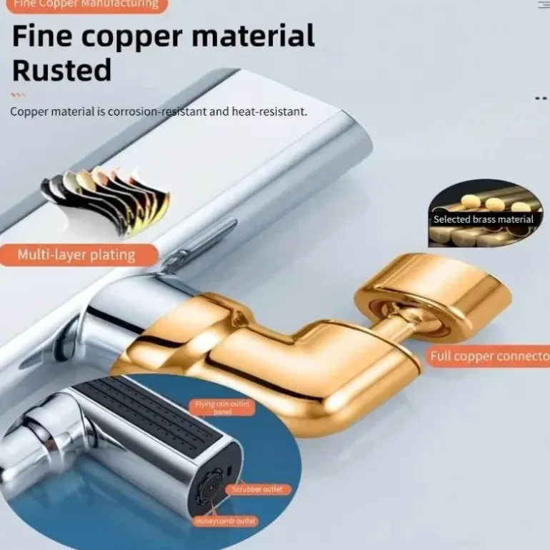 Dieser Wasserhahn aus langlebigem Messing und ABS ist so konzipiert, dass er dem täglichen Verschleiß standhält und gleichzeitig sein elegantes Aussehen behält. Das Herstellungsverfahren mit Verzinkung sorgt für Langlebigkeit und Widerstandsfähigkeit und eignet sich sowohl für die Küche als auch für das Badezimmer.