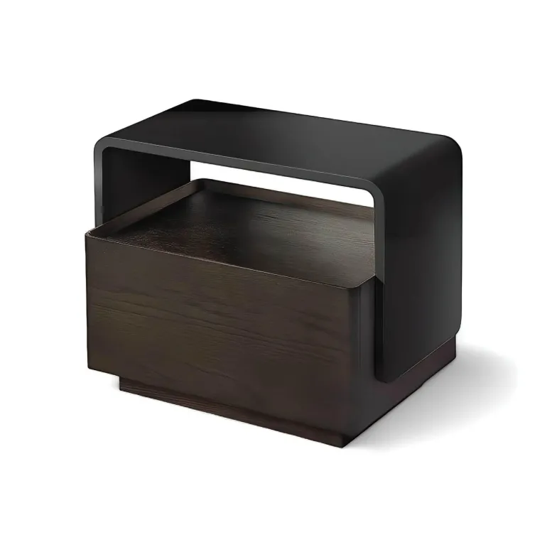 Wir präsentieren den Nachttisch Josue, eine exquisite Verkörperung minimalistischen Designs, das Form und Funktion harmonisch vereint. Gefertigt aus hochwertigem amerikanischem Eichenholz, besticht dieser Nachttisch durch seine langlebige Einbrennlackierung, die seine schlichte Eleganz unterstreicht.