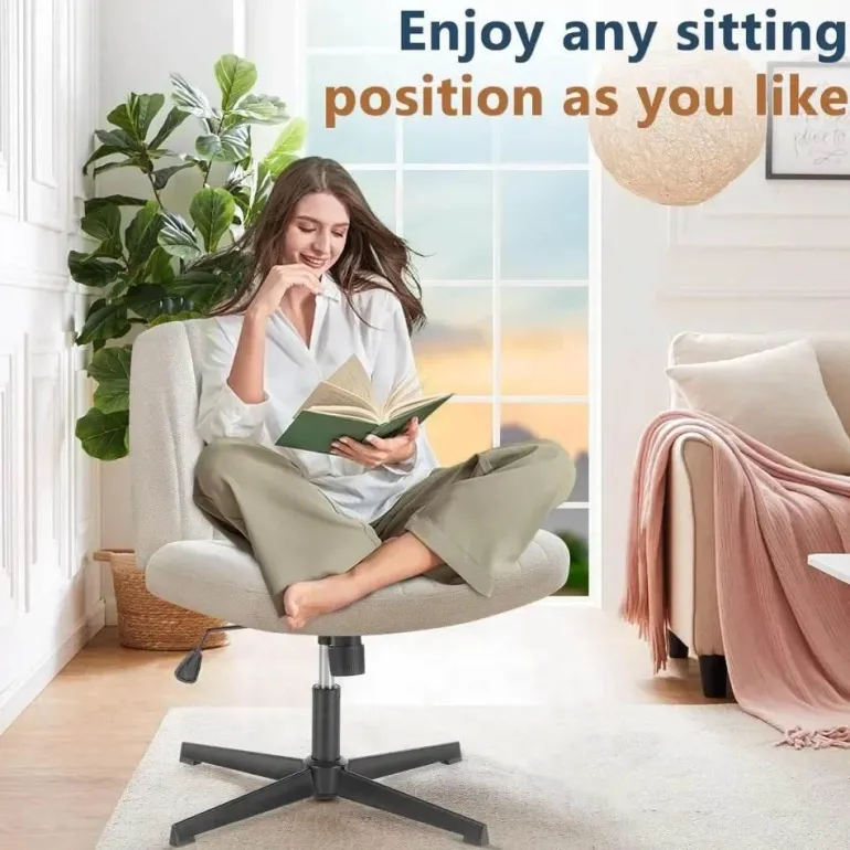 Wir präsentieren den breiten Schreibtischstuhl ohne Armlehnen – eine stilvolle und funktionale Ergänzung für Ihren Arbeitsplatz. Dieser moderne Bürostuhl besticht durch sein markantes Design mit gekreuzten Beinen, das seinen zeitgenössischen Charme unterstreicht und gleichzeitig praktisch ist.