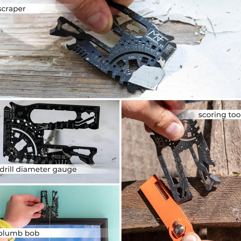 Wir präsentieren das Universal 4.0 MRF Multitool – eine bedeutende Weiterentwicklung im Bereich der vielseitigen Multitools, die perfekt in Ihre Brieftasche passen. Dieses kompakte Werkzeug im Kreditkartenformat bietet mehr als 80 Funktionen und ist damit eines der effizientesten Multitools auf dem Markt.