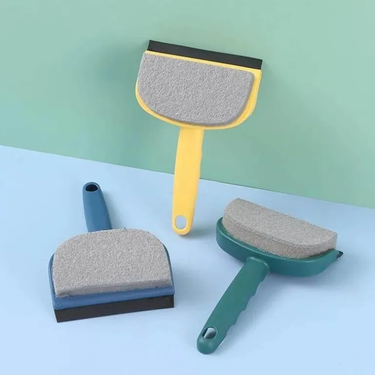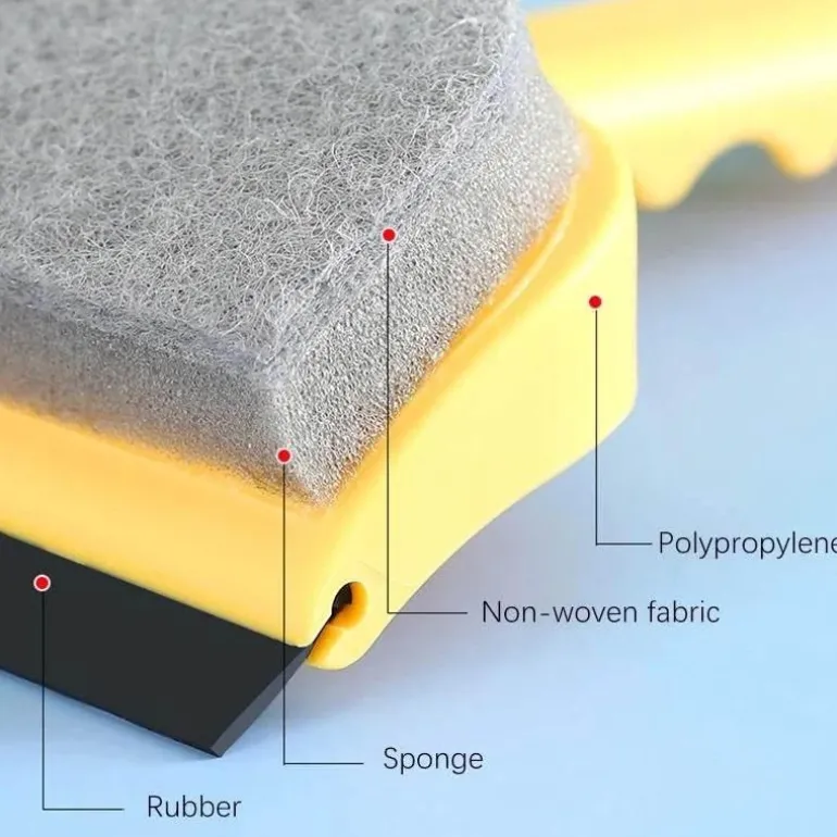 Die multifunktionale Reinigungsschwammbürste ist ein unverzichtbares Werkzeug für effektives Reinigen und Schrubben in Küche und Haushalt. Das innovative doppelseitige Design verfügt auf der einen Seite über eine weiche Schwammbürste, die sich perfekt zum sanften Abwischen von Oberflächen wie Arbeitsplatten und Fenstern eignet. Die andere Seite ist mit Gummiwischerblättern ausgestattet, die geschickt entlang einer gebogenen Kante positioniert sind, sodass Sie auch enge Stellen um Spülen und Ecken mühelos erreichen.