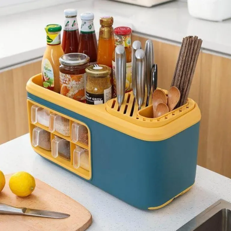 Dieser multifunktionale Küchen-Organizer ist eine hervorragende Lösung, um Ihre Gewürze übersichtlich und leicht zugänglich aufzubewahren. Mit sechs geräumigen Fächern bietet er Platz für Zucker, Salz und verschiedene Gewürze und sorgt so für Ordnung in der Küche. Die transparente, abnehmbare Gewürzbox ermöglicht Ihnen einen schnellen Zugriff auf Ihre Lieblingsgewürze und macht das Kochen effizienter und angenehmer.