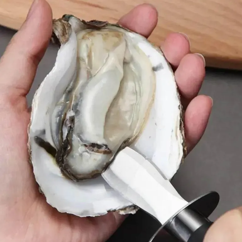 Erleben Sie müheloses Austernöffnen mit Präzision. Die scharfe Klinge des Austernmessers gleitet mühelos durch die Schalen und vereinfacht die Zubereitung von Meeresfrüchten. Verabschieden Sie sich vom Frust mit herkömmlichen Messern; dieses Werkzeug vereinfacht den Vorgang.