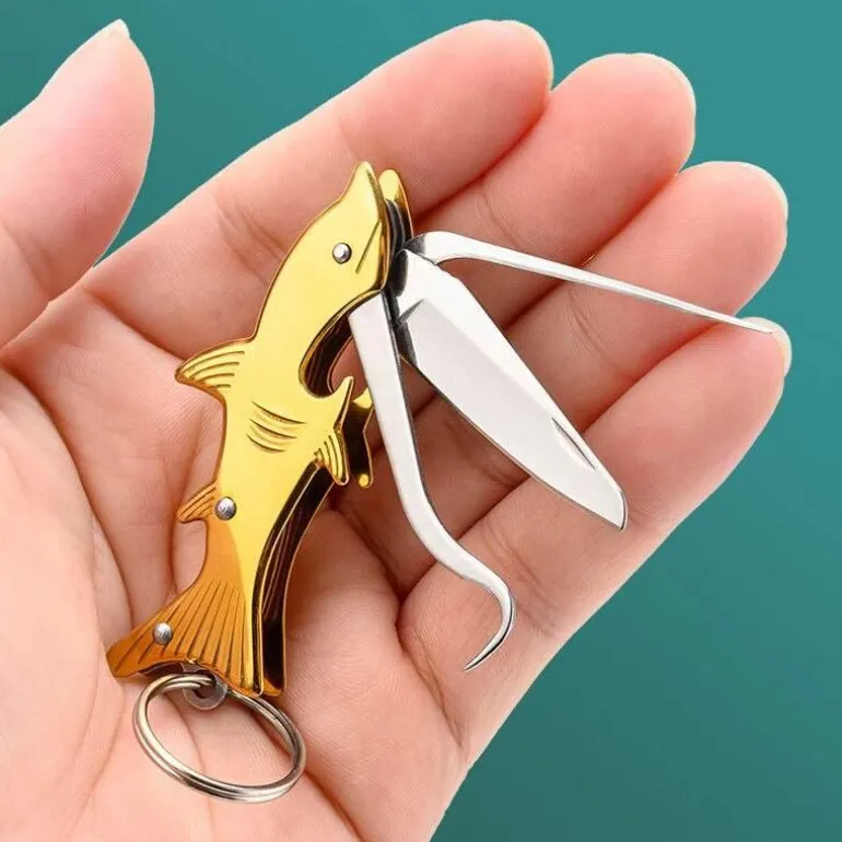 Wir präsentieren den Sharp Shark Multifunktions-Zahnstochermesser-Schlüsselanhänger, ein praktisches Werkzeug, das Funktionalität mit elegantem Design vereint und sich ideal für den täglichen Gebrauch eignet. Dieser kompakte, vielseitige Schlüsselanhänger ist aus robustem Edelstahl gefertigt und garantiert Langlebigkeit und Umweltfreundlichkeit.