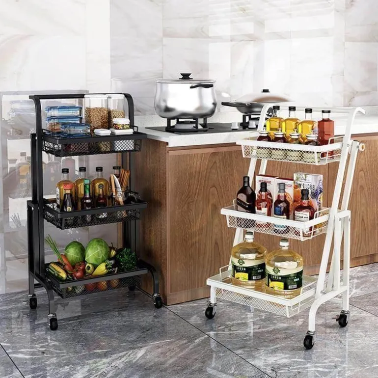 Das multifunktionale Küchenregal maximiert Ihren Platz und bietet gleichzeitig Vielseitigkeit. Dieser praktische Wagen lässt sich für schnellen Zugriff auf Lebensmittel, Gewürze und andere Vorräte einfach herausziehen und anschließend wieder zurückschieben, um wertvollen Platz zu sparen. Dank seiner Mobilität können Sie ihn mühelos ins Wohnzimmer rollen, wenn Sie Gäste haben. So eignet er sich perfekt zum Servieren von Snacks oder Getränken bei geselligen Zusammenkünften.