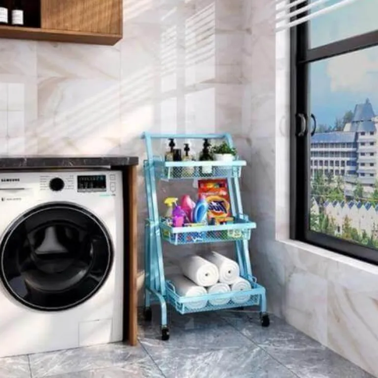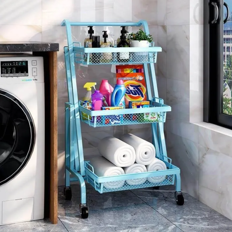 Ziehen Sie den Rollwagen heraus, um schnell auf wichtige Gegenstände zuzugreifen, oder verstauen Sie ihn platzsparend in einer Lücke. Sie können ihn auch für gemütliche Filmabende ins Wohnzimmer rollen und Getränke und Snacks bequem transportieren. Dank der vier Lenkrollen und integrierten Griffe lässt er sich problemlos durch Ihr Zuhause bewegen.