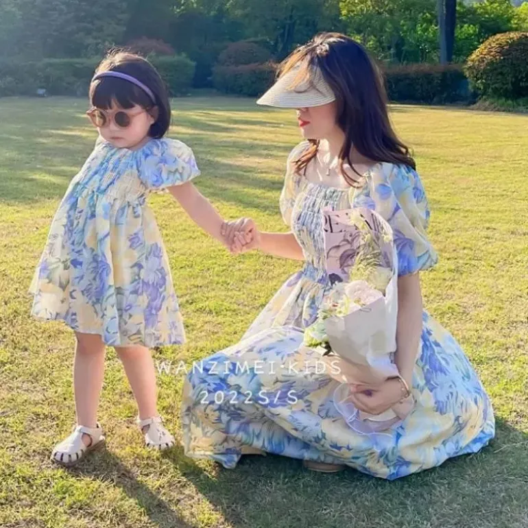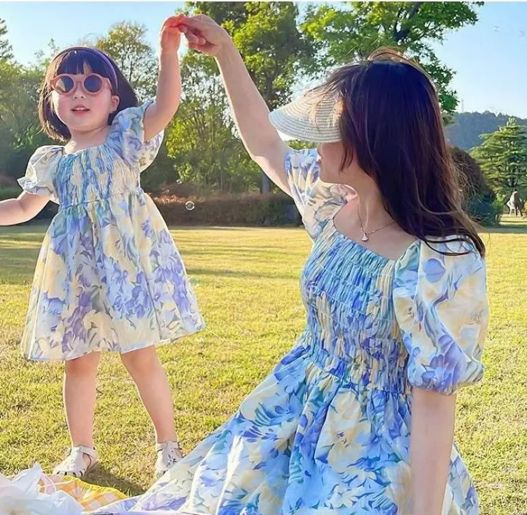 Begrüßen Sie die Jahreszeit mit unserem sommerlichen Chiffon-Kleiderset mit Blumenmuster für Mutter und Tochter – ein wunderschöner Ausdruck der besonderen Bindung zwischen Mutter und Tochter. Dieses bezaubernde Set besticht durch einen lebendigen Blumendruck, der die Essenz sonniger Tage einfängt und jedem Anlass Wärme und Freude verleiht.