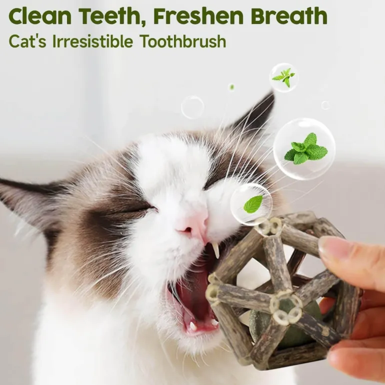 Fördern Sie gesunde Kaugewohnheiten mit unseren Minzkugeln, die die Mund- und Zahngesundheit fördern. Die Silberreben-Sticks unterstützen die Entwicklung der bleibenden Zähne und helfen gleichzeitig, Zahnbelag und Zahnstein zu reduzieren. Das bedeutet für Ihre Katze einen frischeren Atem und eine verbesserte Zahnhygiene.