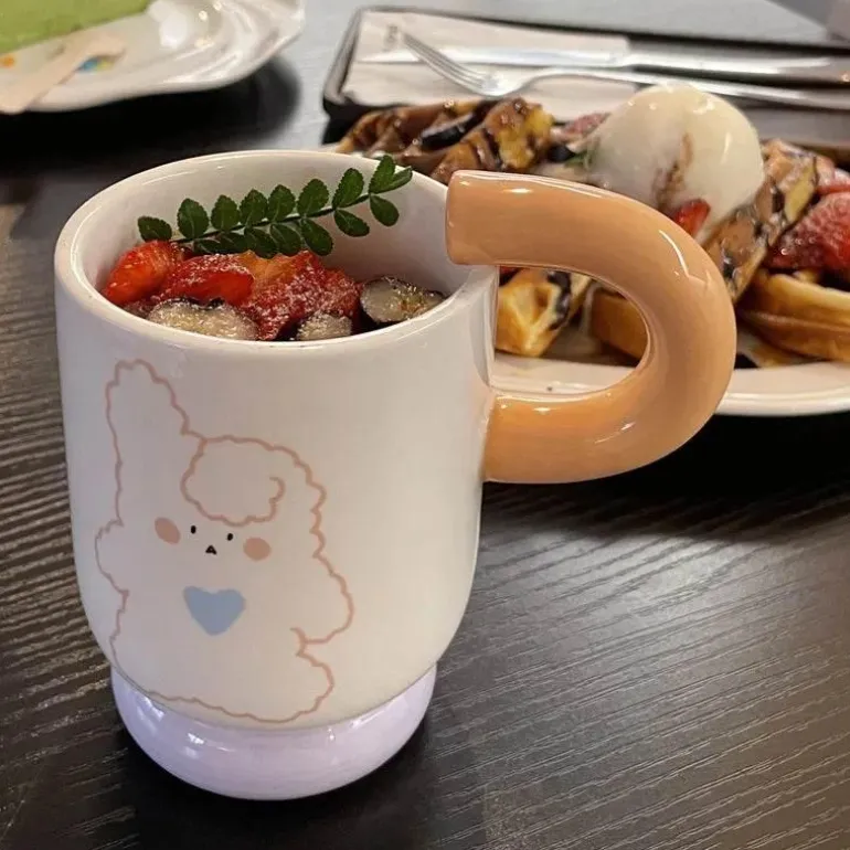 Wir präsentieren unsere bezaubernde Keramiktasse – eine charmante Ergänzung für Ihr Kaffee- oder Teeritual. Diese hochwertige Tasse aus Bone China vereint Eleganz und Langlebigkeit und ist die ideale Wahl für den Genuss Ihrer Lieblingsgetränke. Das originelle Griffdesign unterstreicht die Attraktivität der Tasse und verleiht Ihrer Sammlung eine verspielte Note im koreanischen Stil.