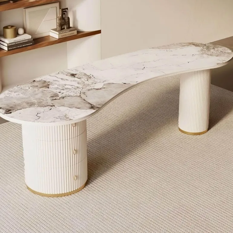 Erleben Sie die perfekte Kombination aus Langlebigkeit und Eleganz mit dem Nino Slate Schreibtisch, der jeden modernen Arbeitsplatz aufwertet. Der robuste Edelstahlrahmen bietet eine solide Basis, während die elegante Schiefersteinplatte Ihrem Ambiente einen Hauch von Raffinesse verleiht und die Professionalität steigert.