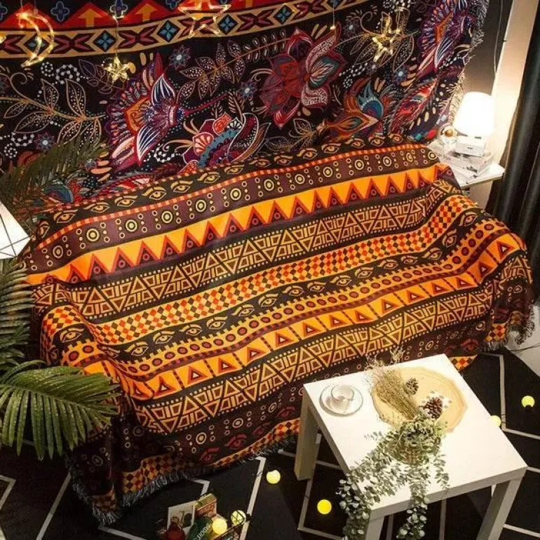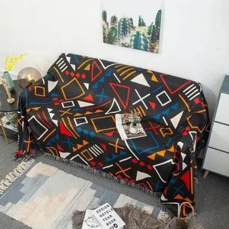 Verleihen Sie Ihrem Zuhause mit der wasserdichten Nordic Bohemia Sofadecke einen stilvollen und praktischen Touch. Diese Decke aus hochwertigem 100 % Polyester besticht durch ihren lebendigen 3D-Retro-Ethno-Print und ist ein Blickfang für Ihren Sessel oder Ihr Sofa.