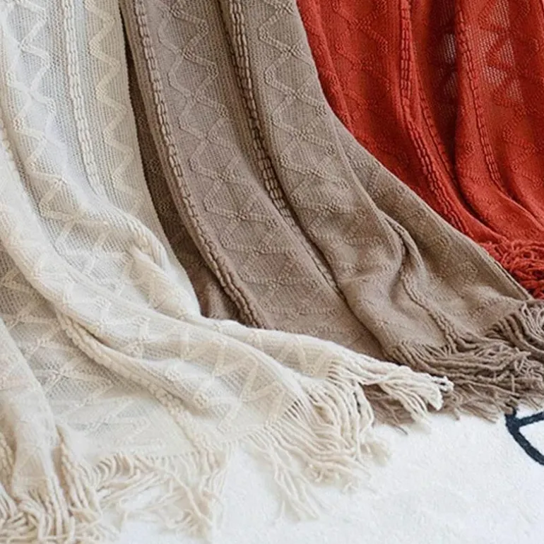 Wir präsentieren die Nordic Geometric Knit Blanket, eine weiche und kuschelige Decke, die Ihren Komfort in jeder Umgebung steigert. Hergestellt aus 100 % Acryl, bietet diese Decke außergewöhnlich viel Wärme und Haltbarkeit und eignet sich perfekt für Betten, Sofas oder sogar für ein Nickerchen im Büro.