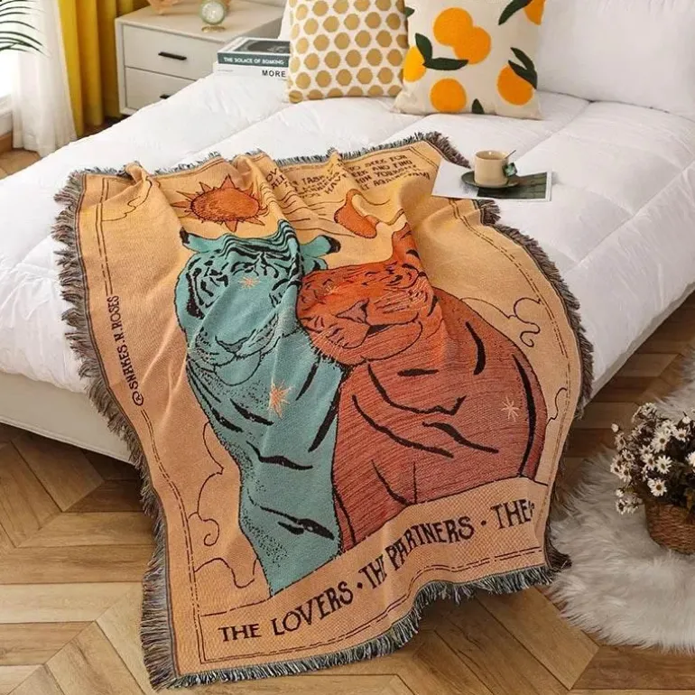 Diese Decke ist ideal für Frühling und Herbst und besticht durch ihre beeindruckende Farbechtheit, die dafür sorgt, dass das stilvolle geometrische Muster seine leuchtende Farbe behält. Sie unterstreicht Ihre Outdoor-Ästhetik und ist ein unverzichtbares Accessoire für verschiedene Aktivitäten.