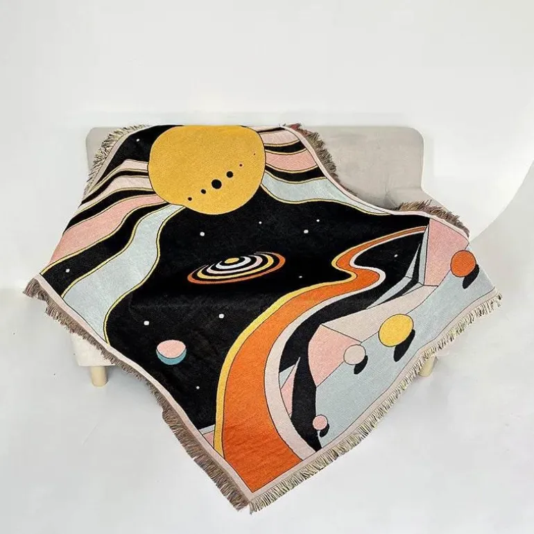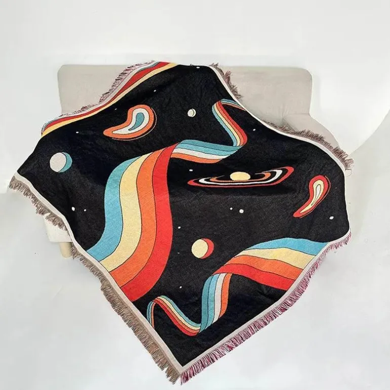 Wir präsentieren die Nordic Boho Flower Jacquard Nap Bed Cover – eine stilvolle und elegante Ergänzung für Ihre Wohnkultur. Diese wunderschön gestaltete Decke aus einer hochwertigen Polyester-Baumwoll-Mischung bietet Komfort und Ästhetik zugleich.
