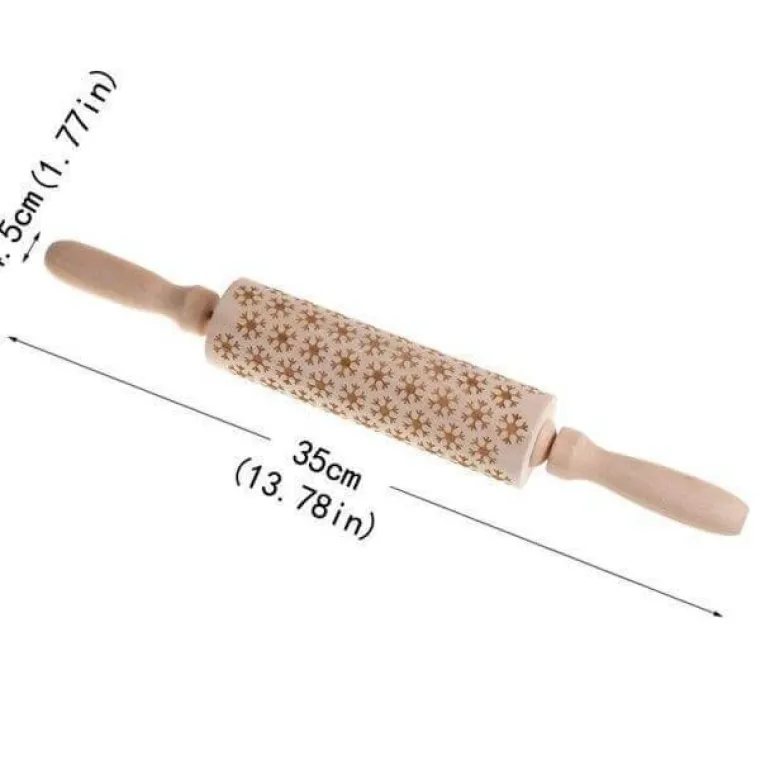 Verschönern Sie Ihre Backabenteuer mit unserem wunderschön gearbeiteten Nudelholz aus Holz mit Schneeflockenprägung. Es eignet sich perfekt für atemberaubende Gebäckdekorationen, Kuchen, Shortbreads, Kekse, Knete und sogar Tonarbeiten. Das einzigartige Schneeflocken-Design verleiht Ihren Backwaren eine charmante Optik und verleiht Ihrer Kücheneinrichtung eine rustikale Note.