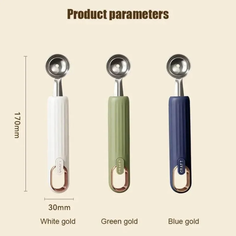Mit diesem Mehrzweckwerkzeug können Sie mühelos perfekt runde Fruchtkugeln formen oder Eiscreme gleichmäßig portionieren und so Ihren Dessertpräsentationen einen Hauch von Eleganz verleihen. Ob Sie Obstsalate zubereiten, Gerichte garnieren oder Eiskugeln servieren – dieses Werkzeug ist für jeden kulinarischen Liebhaber von unschätzbarem Wert.