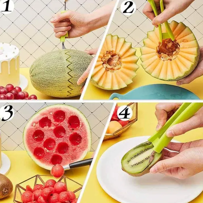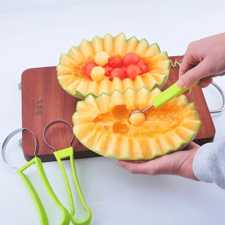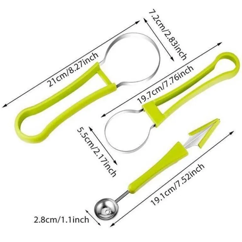 Dieses vielseitig einsetzbare Obstschnitzmesser-Set eignet sich perfekt zum Zubereiten runder Stücke aus verschiedenen Früchten wie Wassermelone, Cantaloupe-Melone, Drachenfrucht, Kiwi und mehr. So zaubern Sie mühelos Obstsalate, die nicht nur lecker, sondern auch optisch ansprechend sind und Ihren kulinarischen Bemühungen eine besondere Note verleihen.
