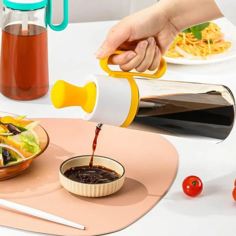 Jede Ölspenderflasche verfügt über einen auslaufsicheren Silikondichtring am Deckel. Dieser sorgt für einen sicheren, luftdichten Verschluss und verhindert, dass auslaufende Flüssigkeit, Staub und Feuchtigkeit die Frische Ihrer Gewürze beeinträchtigen. Das innovative Press-Design ermöglicht eine präzise Kontrolle der Ölabgabe. Drücken Sie einfach auf den Flaschendeckel, um die Dosierung anzupassen.