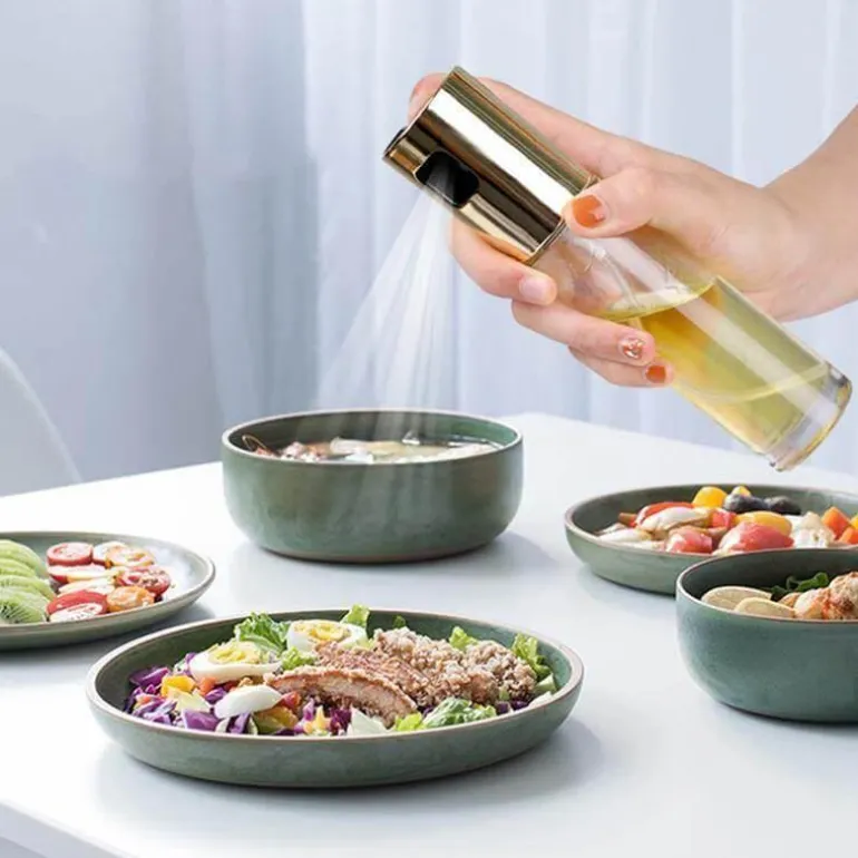 Der vielseitige Zerstäuber ist nicht nur auf Öl beschränkt; er kann eine Reihe von Flüssigkeiten verarbeiten, darunter Essig, Speisewein, Pflanzenöl, Sojasauce und sogar Wasser. Ein leichter Knopfdruck setzt einen feinen Nebel frei, der Ihre Heißluftfritteuse, Pfanne oder Ihren Herd gleichmäßig bedeckt. Für eine optimale Verteilung halten Sie den Sprüher höher, um einen gleichmäßig verteilten Nebel zu erhalten.