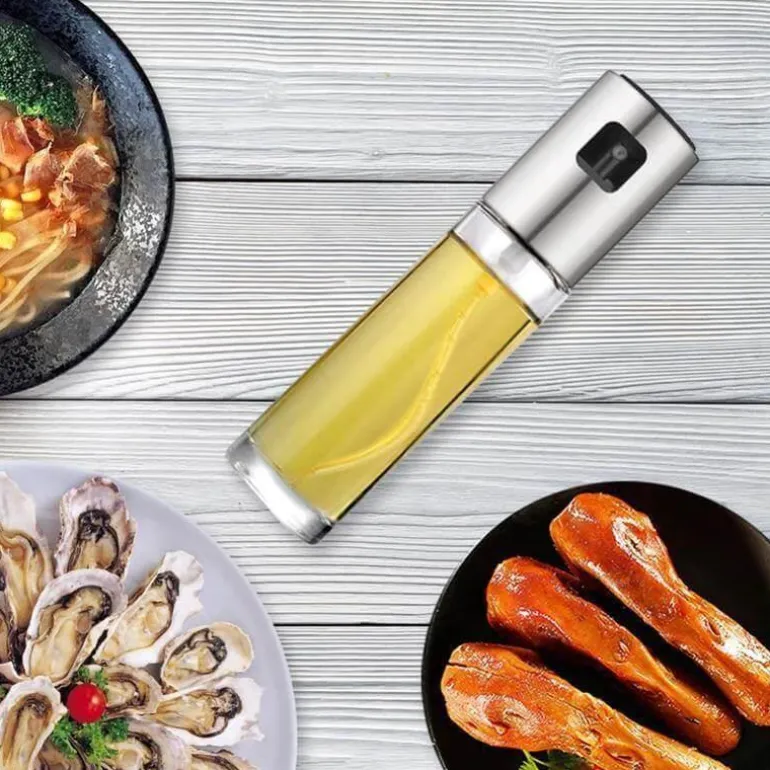 Hergestellt aus hochwertigem 304 Edelstahl und einer lebensmittelechten Glasflasche, steht dieser Ölzerstäuber für Sicherheit und Gesundheit. Sein schlankes und tragbares Design ist ideal für alle, die ihre Ölzufuhr bei der Zubereitung von Mahlzeiten sorgfältig kontrollieren möchten. Füllen Sie ihn einfach mit Ihrem bevorzugten Öl und nehmen Sie ihn zum Grillen oder anderen Kochaktivitäten mit nach draußen.