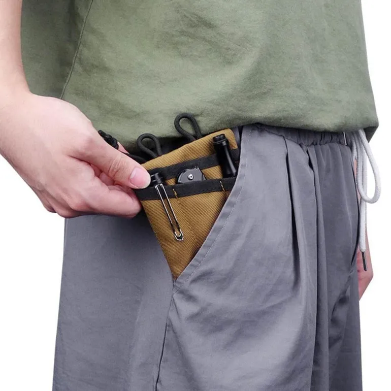 Im Paket enthalten ist eine stilvolle, multifunktionale EDC-Aufbewahrungstasche für den Außenbereich, die Ihr Outdoor-Erlebnis mit Funktion und Stil bereichert.