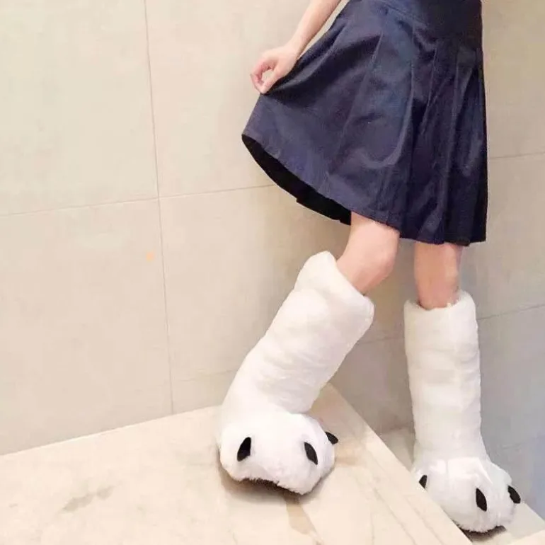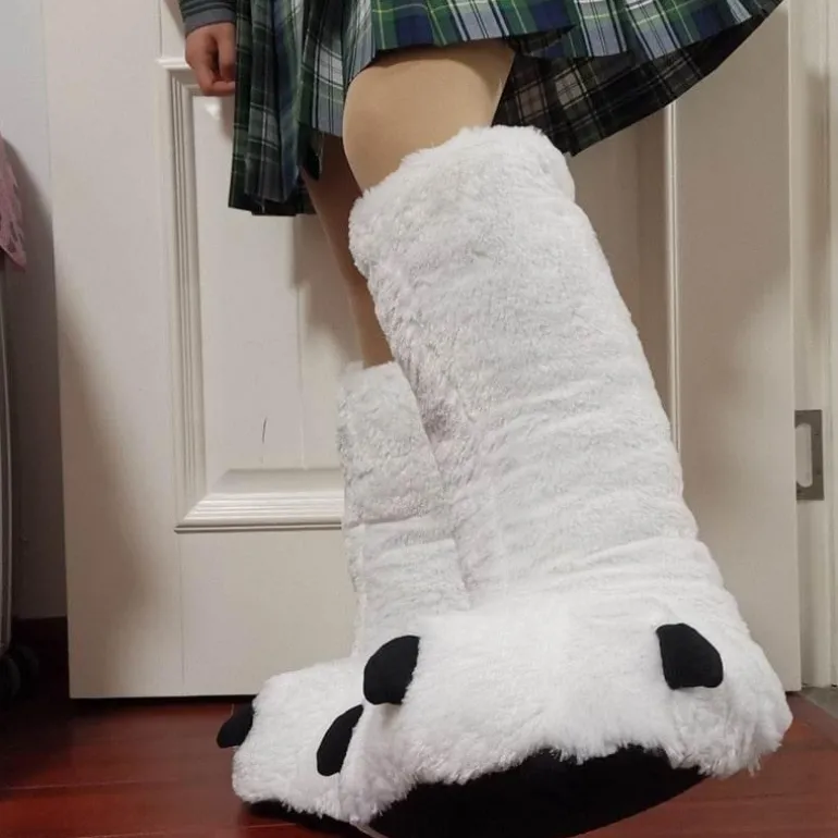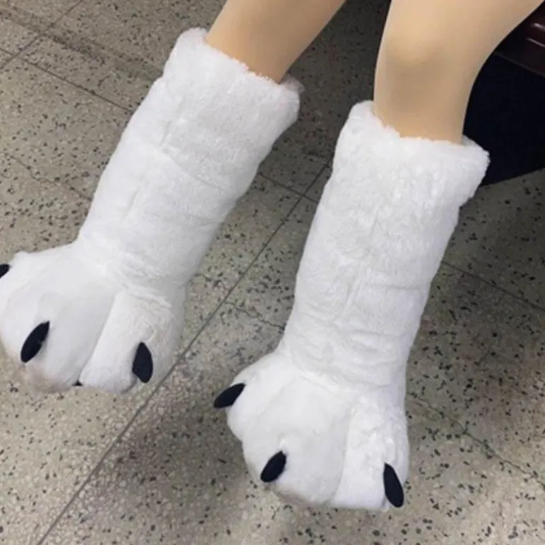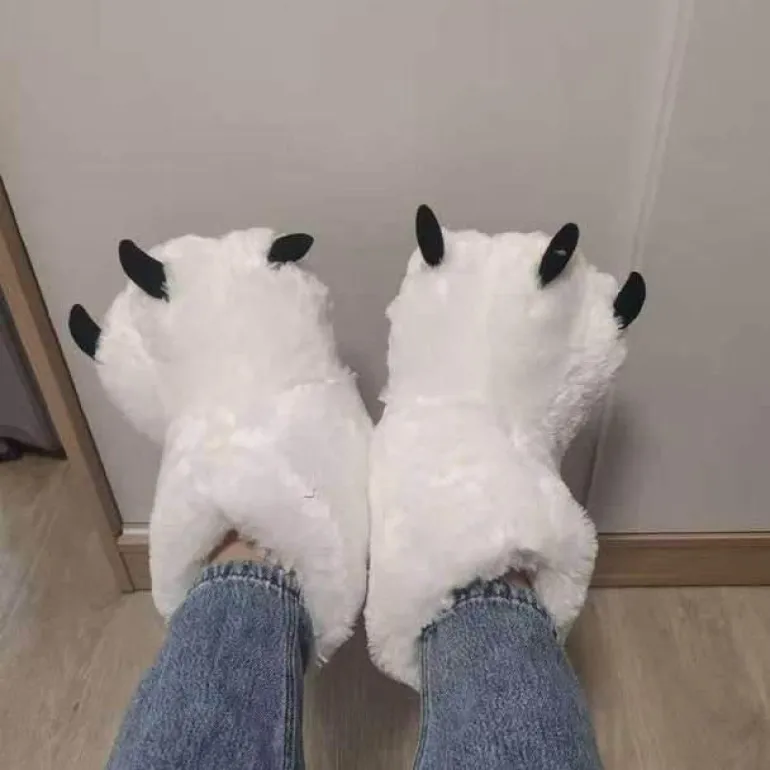 1 x pelzige Hausschuhe mit Bärenklauen.