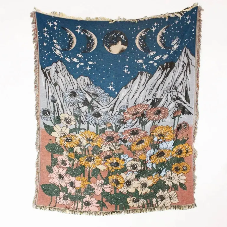 Mit ihrem bezaubernden Landschaftsmuster verleiht diese Matte jedem Anlass einen besonderen Charme und eignet sich besonders für die erfrischenden Jahreszeiten Frühling und Herbst. Ob Sie ein Picknick planen, einen Tag am Strand genießen oder Ihren Komfort zu Hause oder im Hotel steigern möchten – dieses anpassungsfähige Stück wird Ihren Anforderungen gerecht.