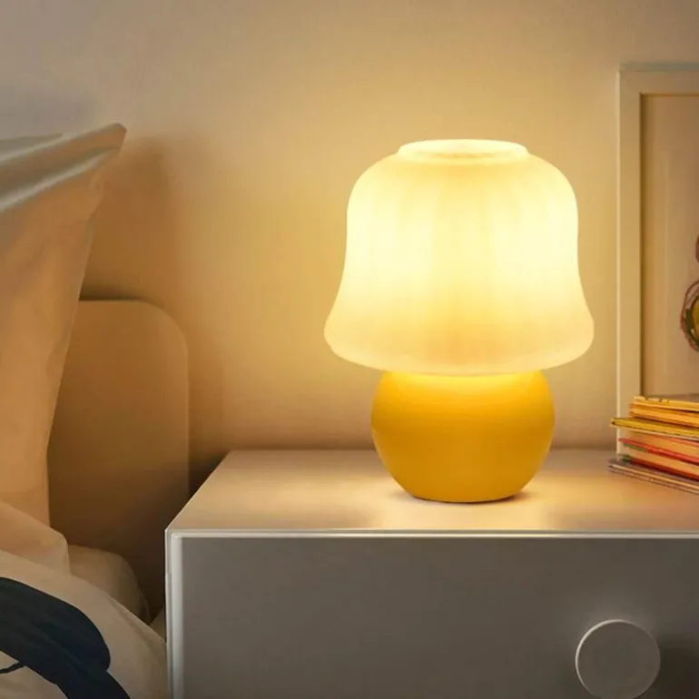 Verwandeln Sie Ihren Wohnraum mit der charmanten Tischleuchte Mushroom, die ein sanftes, einladendes Licht verbreitet. Die fachmännisch aus geblasenem Glas gefertigte Leuchte verfügt über einen Lampenschirm mit hoher Lichtdurchlässigkeit, der eine sanfte und gleichmäßige Beleuchtung ohne grelles Blenden ermöglicht. Ob im Schlafzimmer, Wohnzimmer oder Arbeitszimmer – die Tischleuchte Mushroom wertet Ihre Einrichtung auf und sorgt gleichzeitig für praktische Beleuchtung. Mit drei einstellbaren Farbeinstellungen passt sie sich jeder Stimmung und jedem Anlass an.