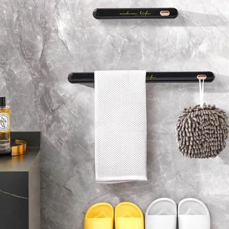Der platzsparende Handtuchhalter ist eine effiziente Lösung für Ordnung und Ordnung im Badezimmer. Er ist für die sichere Wandmontage konzipiert und bietet Platz für bis zu zwei Handtücher, sodass diese immer griffbereit sind. Seine schlichte und minimalistische Ästhetik passt zu jeder Badezimmereinrichtung, während das kompakte Design den verfügbaren Platz optimal nutzt und mehr Bewegungsfreiheit bietet.