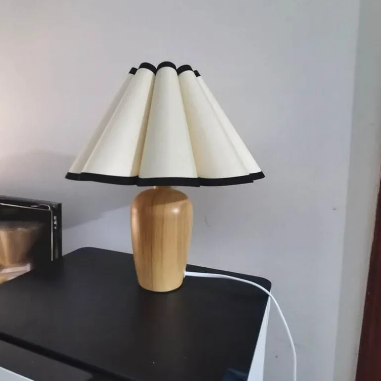 Verschönern Sie Ihren Wohnraum mit unserer plissierten Tischleuchte im Retro-Stil mit wunderschön gearbeitetem Holzsockel aus hochwertigem Holz. Diese Leuchte verbindet Schlichtheit mit Eleganz und bietet eine warme Lichtquelle, die die Atmosphäre jedes Raumes bereichert und Ihrer Einrichtung eine reizvolle Note verleiht.
