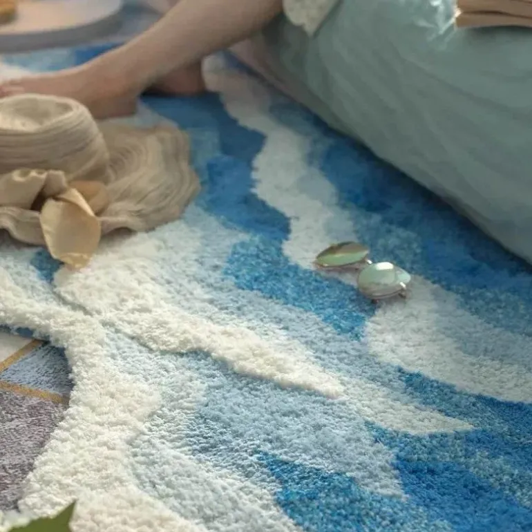 Verwandeln Sie Ihren Wohnraum mit der ruhigen Eleganz unseres einzigartigen Wellenteppichs, der die beruhigende Wirkung von Meereswellen nachempfinden soll. Dieser weiche, plüschige Teppich sorgt für mehr Komfort und setzt gleichzeitig einen stilvollen Akzent in Ihrem Zuhause. Dank seiner rutschfesten Rückseite haftet er sicher auf verschiedenen Bodenbelägen und reduziert so die Rutsch- und Sturzgefahr für zusätzliche Sicherheit.