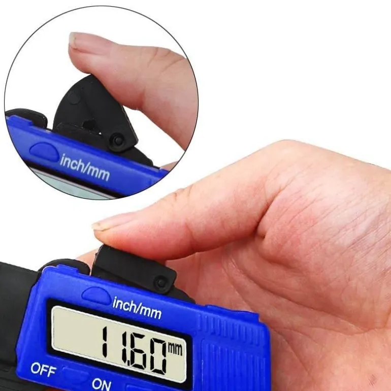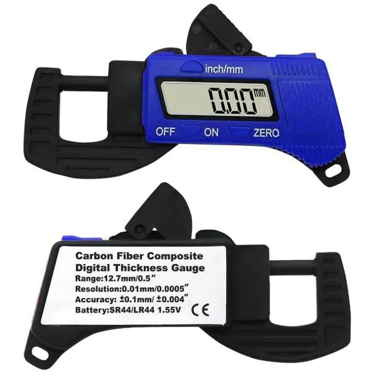 Dieser Messschieber aus hochfestem Kohlefaserverbundwerkstoff bietet außergewöhnliche Langlebigkeit. Er verfügt über eine hohe Auflösung von 0,01 mm und eine Genauigkeit von ±0,1 mm (oder 0,005 Zoll) bei einem Messbereich von 0–12,7 mm (0,5 Zoll). Das große LCD-Display zeigt die Messwerte sowohl in Dezimalzoll als auch in Millimetern an und lässt sich bequem über eine praktische rote Taste auswählen.