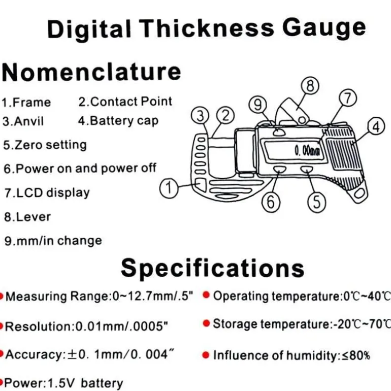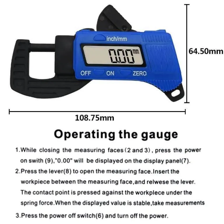 Die Bedienung des Messschiebers ist unkompliziert: Drücken Sie die Messbacken einfach auf die Objektoberfläche, um schnell und präzise Dickenmessungen durchzuführen. Eine englische Bedienungsanleitung liegt der Verpackung bei.