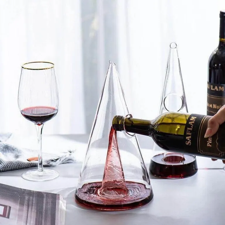 Entdecken Sie das raffinierte Design unserer Pyramiden-Weinkaraffe aus Glas – ein unverzichtbares Accessoire für Ihren Weingenuss. Die minimalistische und zugleich auffällige Pyramidenform aus kristallklarem Glas ermöglicht eine mühelose Einhandbedienung und verbindet Funktionalität mit Ästhetik. Die Hochtemperatur-Satinierung und die Anti-Rutsch-Beschichtung sorgen für einen angenehmen Griff und verleihen dem Dekanter seinen eleganten Charme.