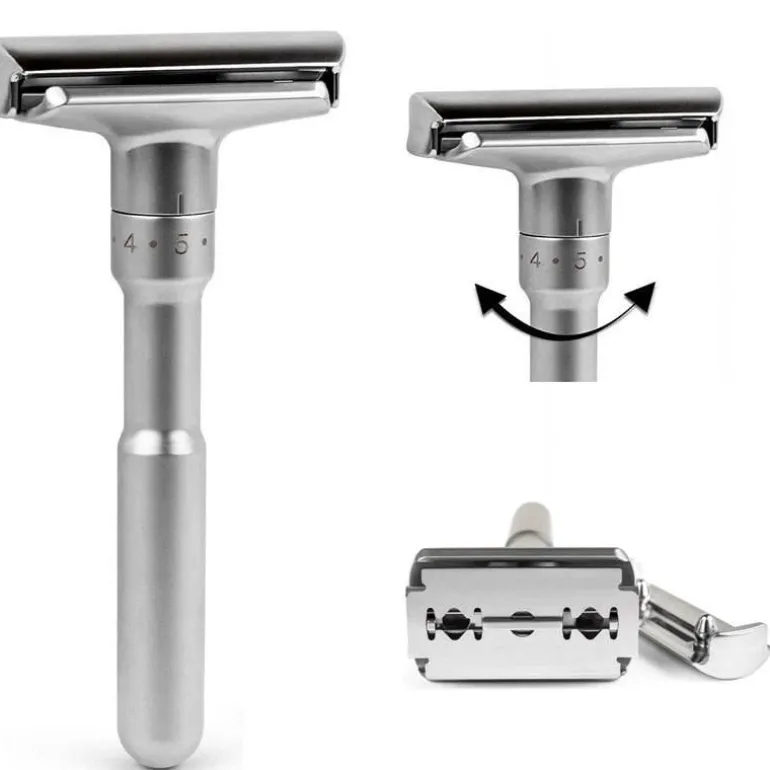**Paket beinhaltet:** 1 x verstellbarer klassischer Rasierhobel mit zwei Klingen.
