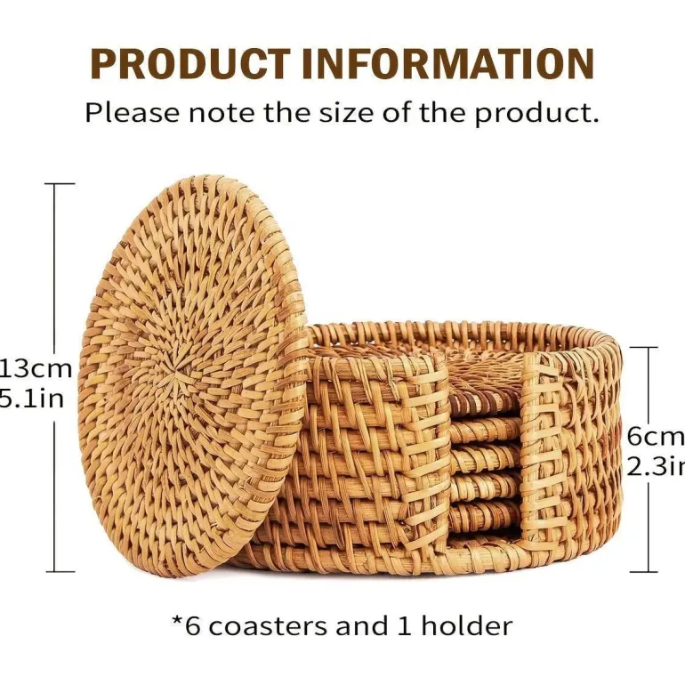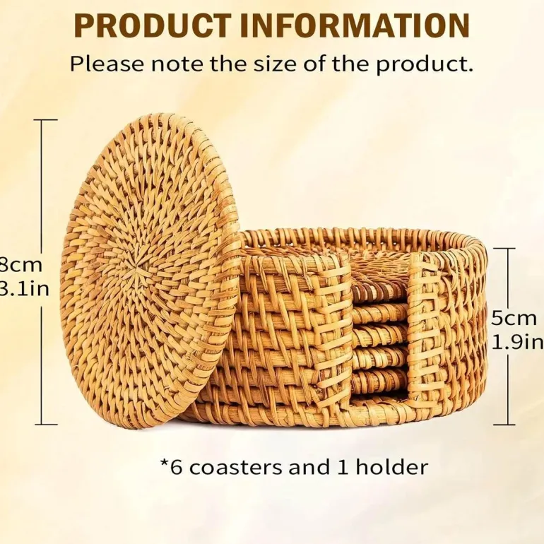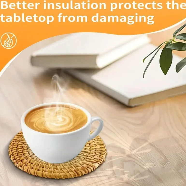 Verwandeln Sie Ihre Tischdekoration mit diesen Rattan-Untersetzern – perfekt für alle, die ihrem Wohnraum ein praktisches und zugleich stilvolles Accessoire verleihen möchten. Diese kunstvollen Untersetzer vereinen Funktionalität mit Eleganz, beeindrucken Ihre Gäste und schützen gleichzeitig Ihre Oberflächen.