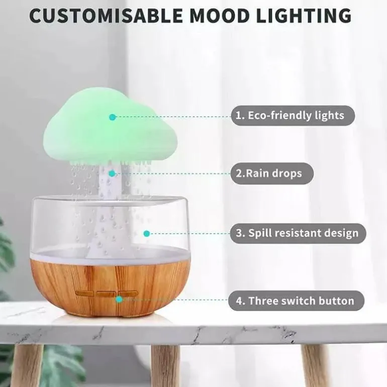 Verwandeln Sie Ihr Wohnambiente mit dem Rain Cloud Luftbefeuchter und Nachtlicht – einer gelungenen Kombination aus Funktionalität und Ästhetik. Dieses clever designte Gerät bringt die beruhigende Essenz der Natur in Ihr Zuhause und erzeugt mit seinem sanften, warmen Licht eine heitere Atmosphäre in jedem Raum. Dank seiner kompakten Größe passt es ideal auf Ihren Nachttisch oder Schreibtisch und wertet Ihr Ambiente auf und fördert gleichzeitig die Entspannung.