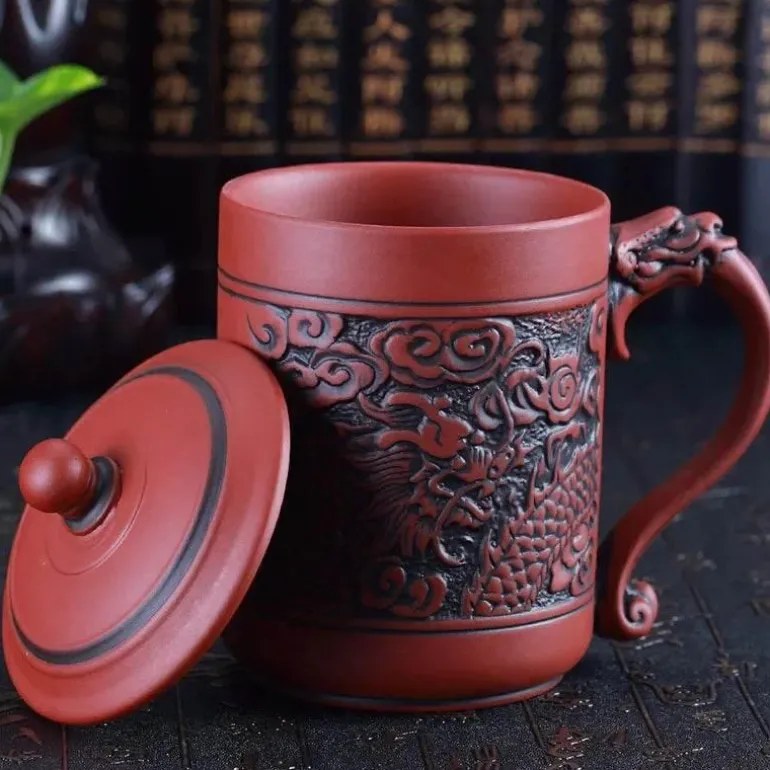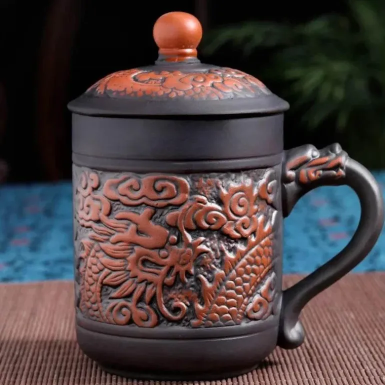 Entdecken Sie den Charme traditioneller chinesischer Kunst mit dem Dragon Phoenix Thermo-Reisebecher. Dieser sorgfältig aus hochwertigem violettem Ton gefertigte isolierte Kaffeebecher bietet ein außergewöhnliches Trinkerlebnis und lässt Sie jeden Schluck Ihres Getränks genießen. Der ergonomische Griff ist komfortabel und vereint Eleganz und Funktionalität für Ihren Alltag.
