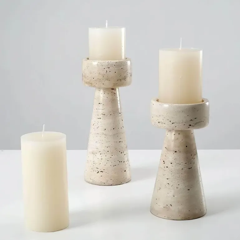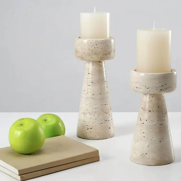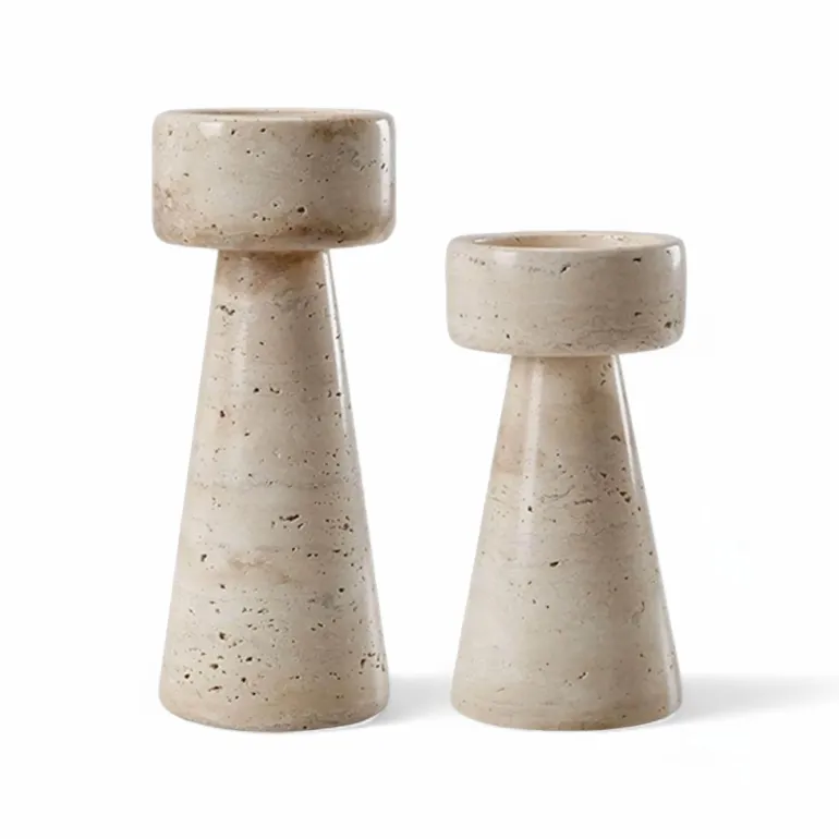 Tauchen Sie ein in die Eleganz der Renato Kerzenhalter, sorgfältig aus echtem Travertin gefertigt. Jeder Halter präsentiert sein einzigartiges natürliches Muster und verleiht Ihrer Wohnkultur eine individuelle Note. Diese raffinierten Kerzenhalter schaffen eine warme und einladende Atmosphäre und unterstreichen die Ästhetik jedes Raumes. Mit ihrem klassischen Design und der hochwertigen Verarbeitung setzen sie einen edlen Akzent in Ihrem Wohnraum und lassen Sie die atemberaubende natürliche Schönheit des Travertins genießen.