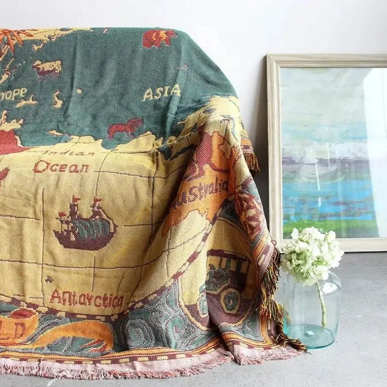 Bringen Sie Wärme und einen Hauch von Eleganz in Ihr Zuhause mit der Retro-Weltkartendecke. Ein funktionales Accessoire, das alle begeistert, die Wert auf Qualität und Design legen. Diese Decke ist eine stilvolle Ergänzung für jeden Wohnraum und vereint Funktionalität mit Ästhetik. Entdecken Sie weitere Wohnideen bei Decor .