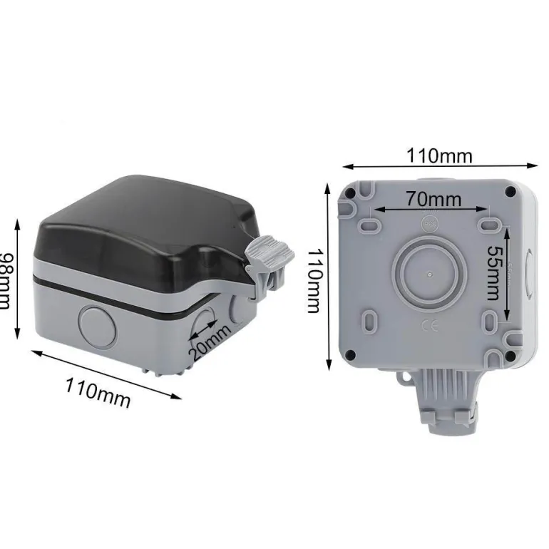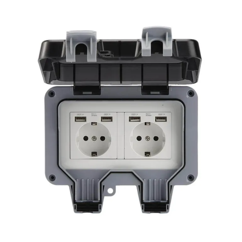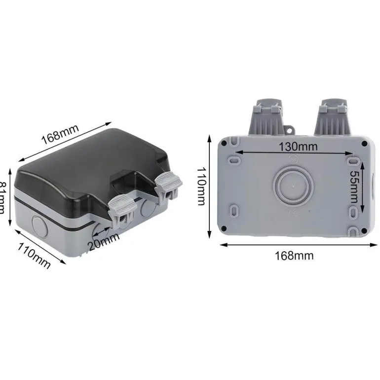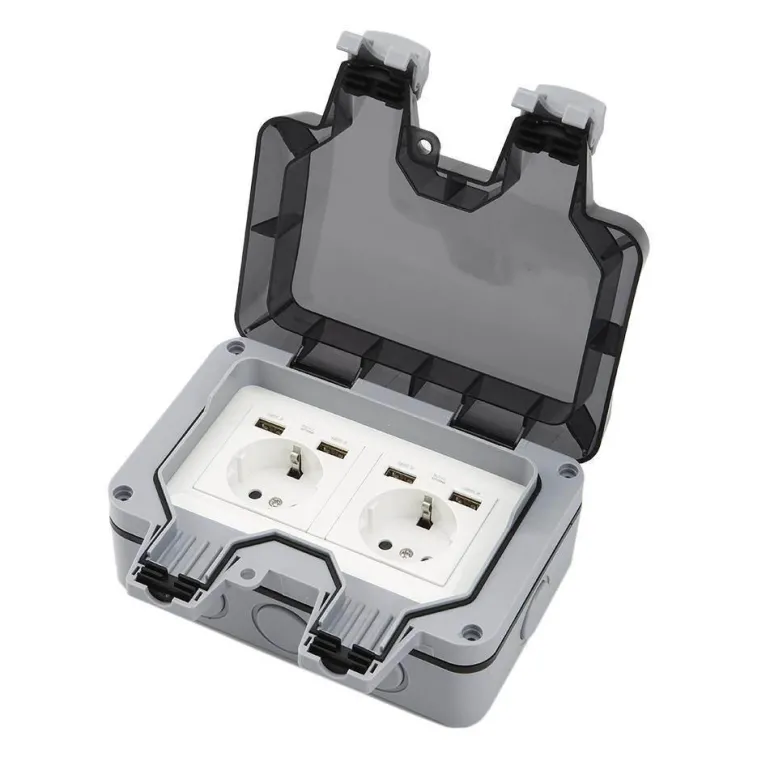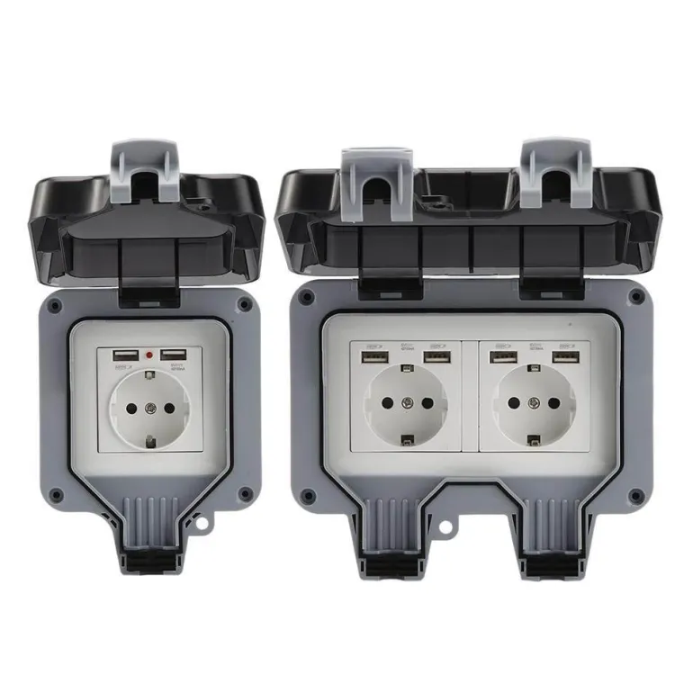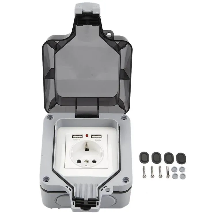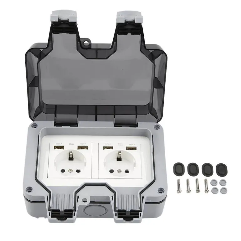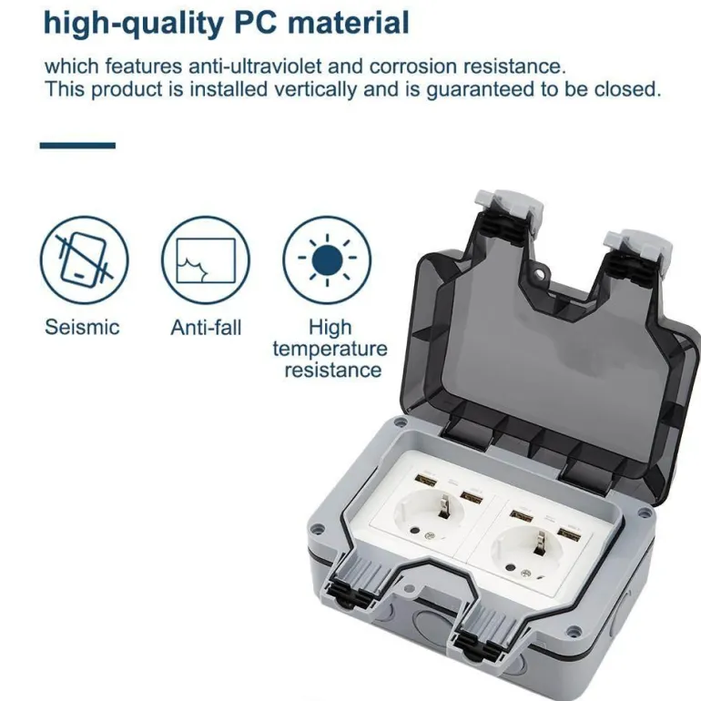 Sicherheit steht bei dieser wetterfesten Steckdose im Vordergrund. Sie verfügt über zwei Steckdosen und eine verschließbare Abdeckung, um versehentliches Öffnen zu verhindern. Zu den Spezifikationen gehören eine Nennspannung von 220 V–250 V, ein Nennstrom von 16 A, ein Kontaktwiderstand von 100 MΩ und ein Isolationswiderstand von 50 MΩ, die alle zu ihrer zuverlässigen Leistung beitragen.