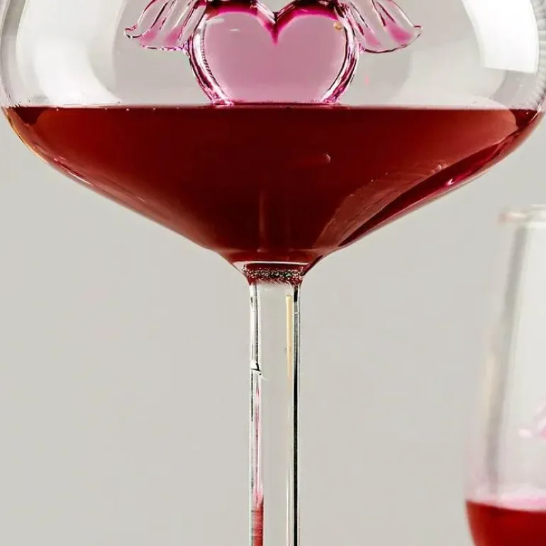 Wir präsentieren den bezaubernden Ripple Goblet Glass Cup im Pink Heart Design, ein entzückendes 350-ml-Gefäß, das Ihr Getränkeerlebnis veredelt. Hergestellt aus hochwertigem Borosilikatglas, vereint dieser elegante Becher Funktionalität mit einem Hauch von Raffinesse.