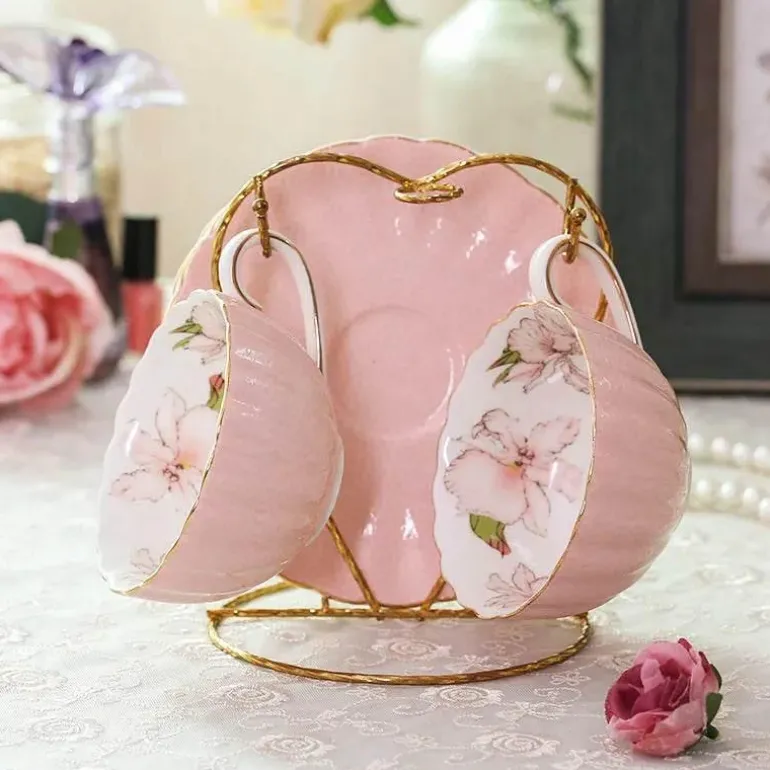 Erleben Sie den Charme unseres rosa Porzellan-Teeservices, das Ihre englischen Nachmittagstee-Rituale perfektioniert. Dieses wunderschön gefertigte Set mit Kaffeetasse und Untertasse bietet ein großzügiges Fassungsvermögen von 200 ml und ist somit die ideale Wahl für den Genuss Ihrer Lieblings-Heißgetränke.