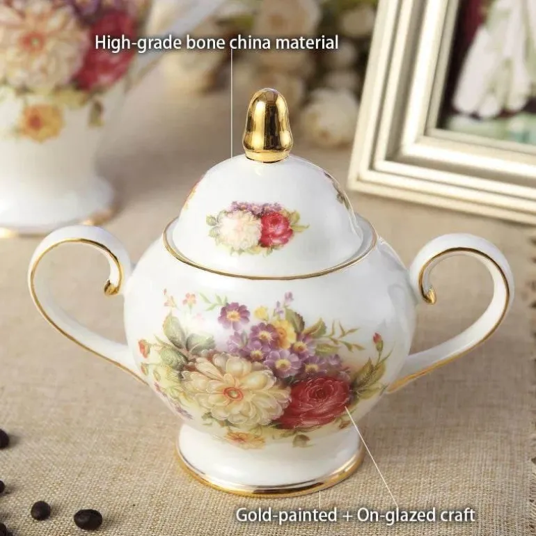Entdecken Sie den raffinierten Charme unseres exquisiten Rose Bone China Teeservices, einer wunderschön gefertigten Kollektion, die Raffinesse und Eleganz verkörpert. Dieses Kaffeeservice aus hochwertigem Bone China besticht durch sein zeitloses Design, das von europäischer und klassischer Ästhetik beeinflusst ist und sich ideal für jedes Zuhause eignet.