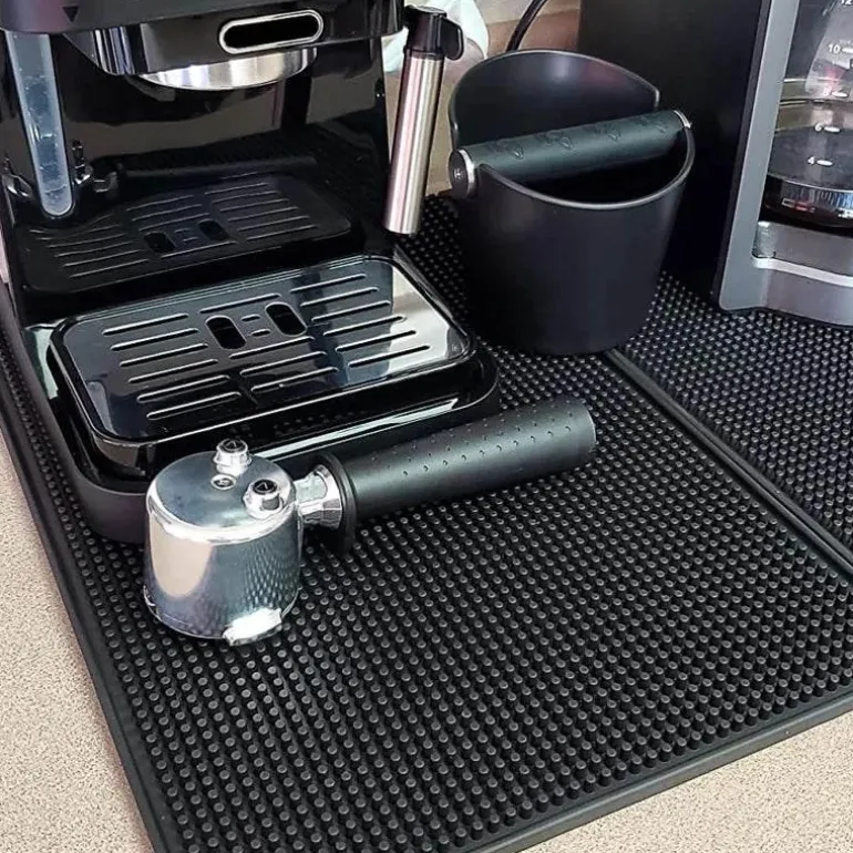 Langlebigkeit ist ein Hauptmerkmal unserer Matten. Sie sind frostbeständig, abriebfest und alterungsbeständig und bieten Ihnen eine dauerhafte Lösung für Ihre Kaffeebar oder Küche. Das hochsaugfähige Design nimmt verschüttete Flüssigkeiten und überschüssige Flüssigkeiten effektiv auf und sorgt für eine sauberere, geordnetere Umgebung.