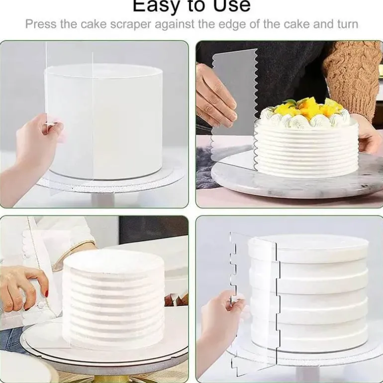 Erleben Sie die Vielseitigkeit unseres Cremeschaber-Sets. Es enthält vier unverzichtbare Werkzeuge für Bäcker aller Erfahrungsstufen. Die aus robustem, hochwertigem Kunststoff gefertigten Sägezahnglätter ermöglichen Ihnen professionelle Ergebnisse auf Kuchen, Gebäck und Desserts und machen Ihre Backkünste deutlich besser.