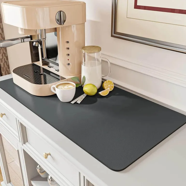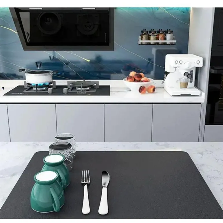 Verschönern Sie Ihre Küche, Bar oder Kaffeestation mit unserer saugfähigen Abtropfmatte. Sie bietet eine praktische Lösung für alltägliche Verschmutzungen und Verschüttetes. Dieses unverzichtbare Küchenaccessoire ergänzt nicht nur Ihre Einrichtung, sondern sorgt auch dafür, dass Ihre Arbeitsflächen sauber und trocken bleiben.