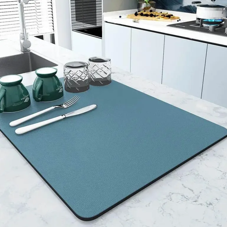 Diese Matte aus strapazierfähigem Silikon und Kieselgur ist in drei vielseitigen Größen erhältlich – 30 x 40 cm, 40 x 50 cm und 50 x 60 cm – sodass Sie für jeden Bereich in Ihrem Zuhause die perfekte Matte finden. Ihre innovative Struktur ermöglicht die schnelle Aufnahme von überschüssigem Wasser, beseitigt Verschüttetes effektiv und verhindert unschöne Wasserflecken auf Ihren Oberflächen.